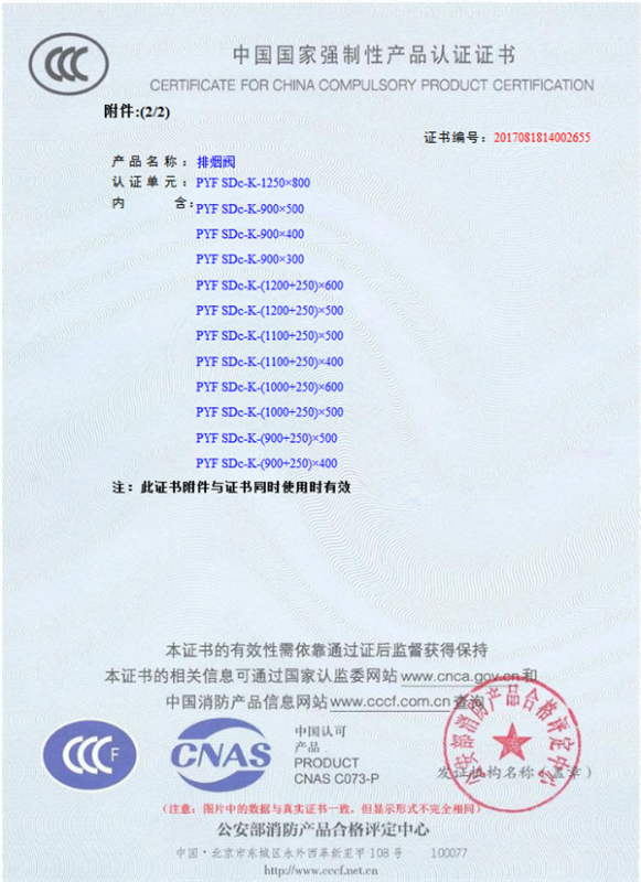 產(chǎn)品全通過國家消防檢測中心檢測,獲得CCC證書